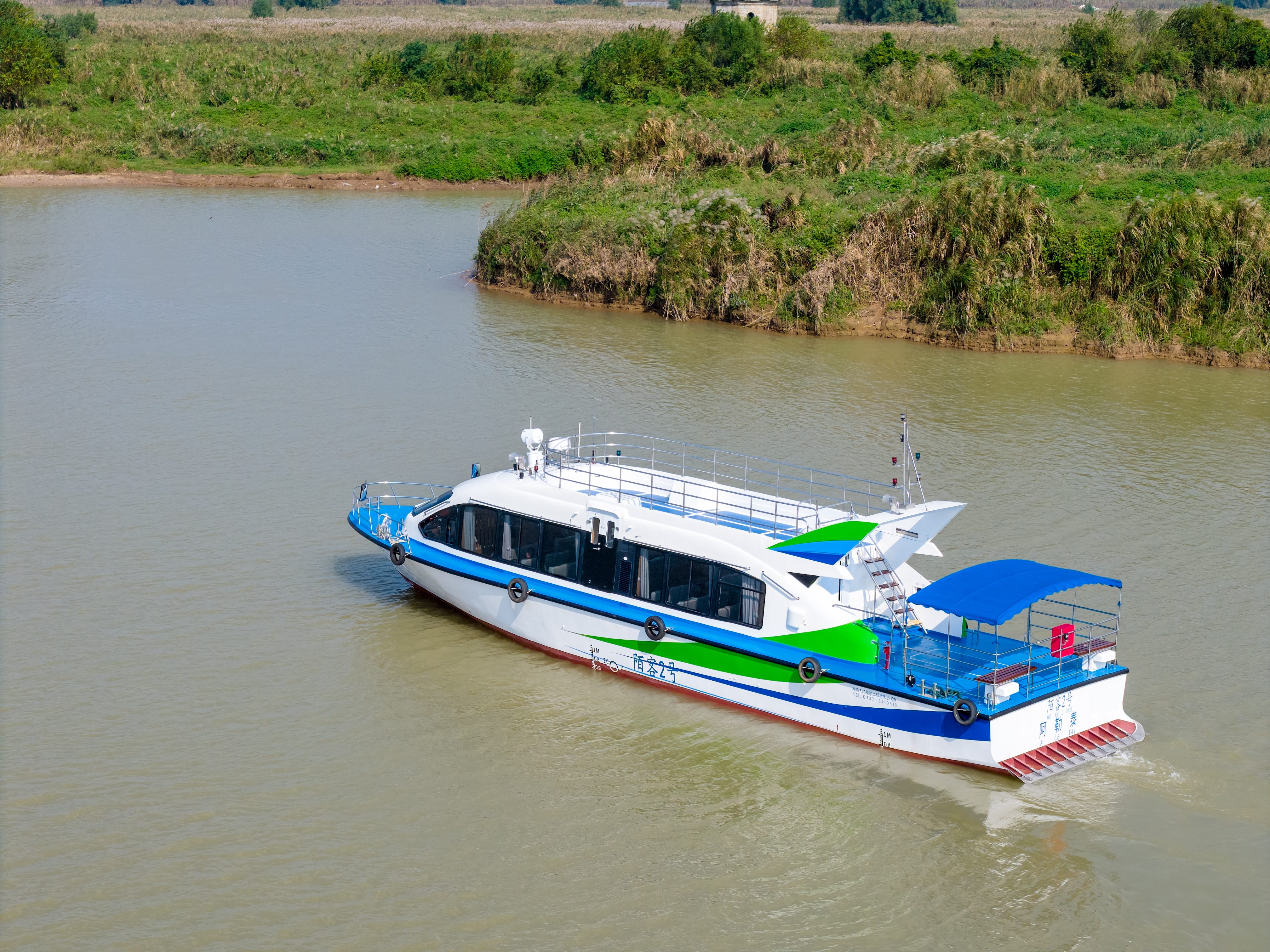 船为单体、单甲板、双机、双桨双舵、纯锂电池电力驱动的纵流型船型,减少兴波与尾浪,主船体采用铝合金结构,上层建筑采用玻璃钢制造。